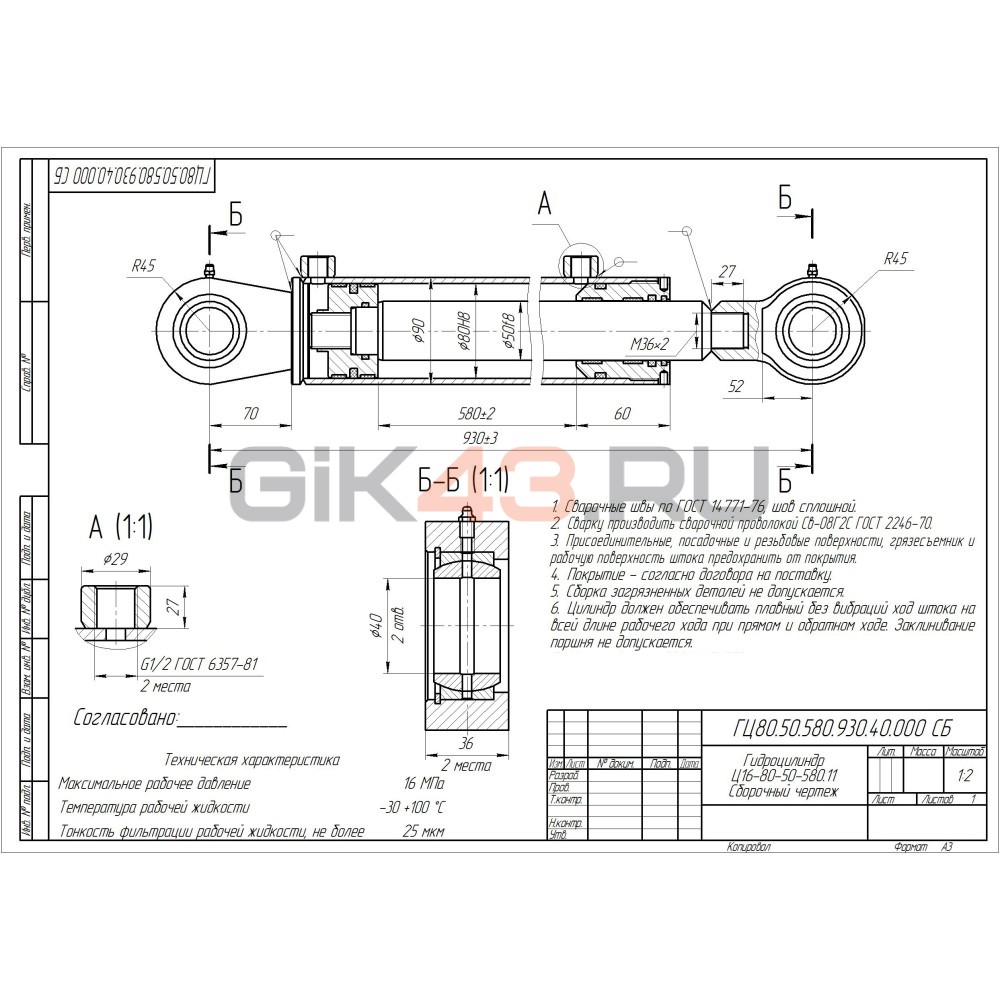 Гидроцилиндр ГЦ 80.50.580.930.40