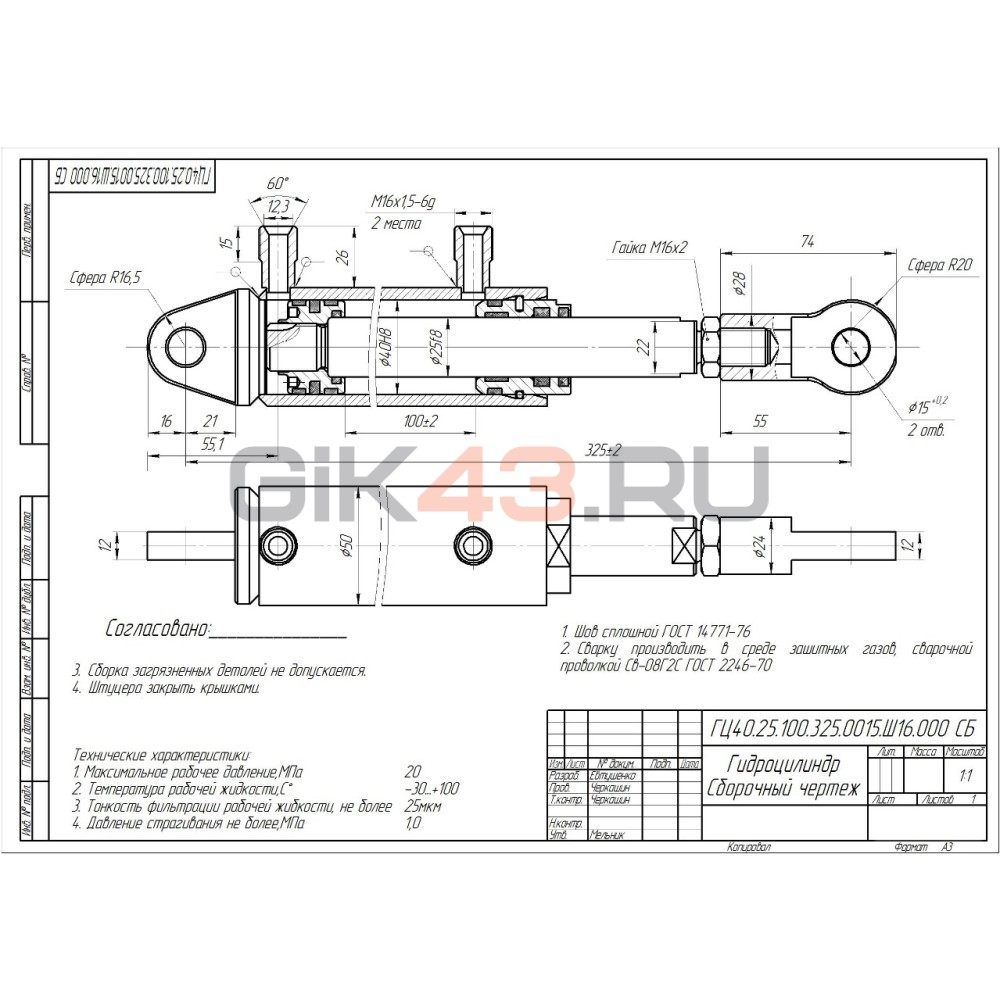 Гидроцилиндр ГЦ 40.25.100.325.0015.Ш16