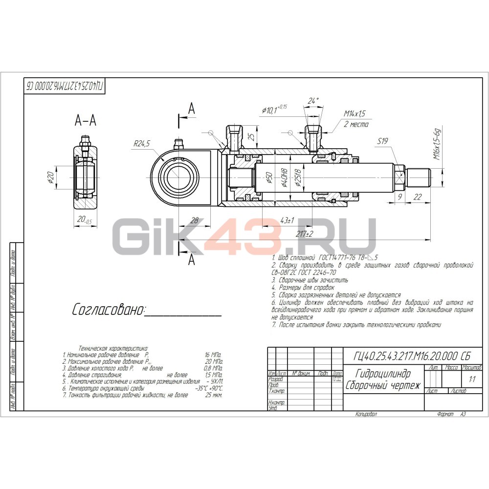 Гидроцилиндр ГЦ 40.25.43.217.М16.20