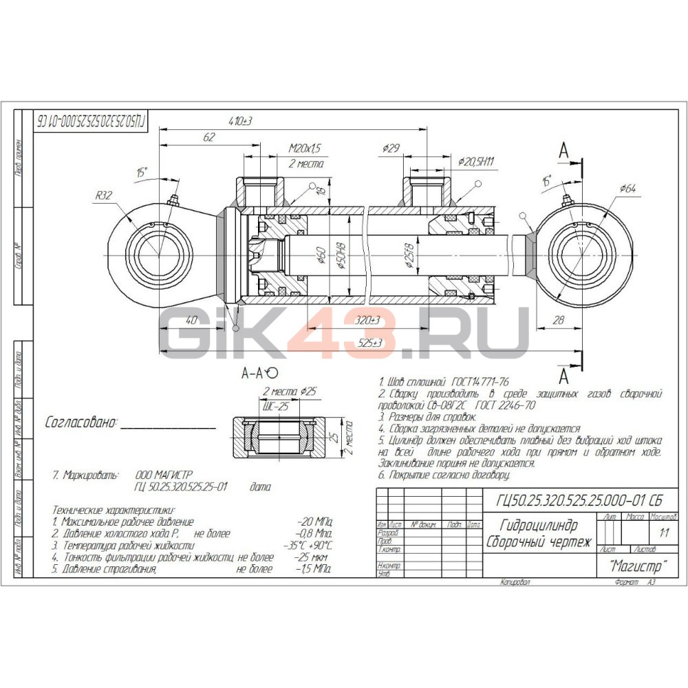 Гидроцилиндр ГЦ 50.25.320.525.25-01