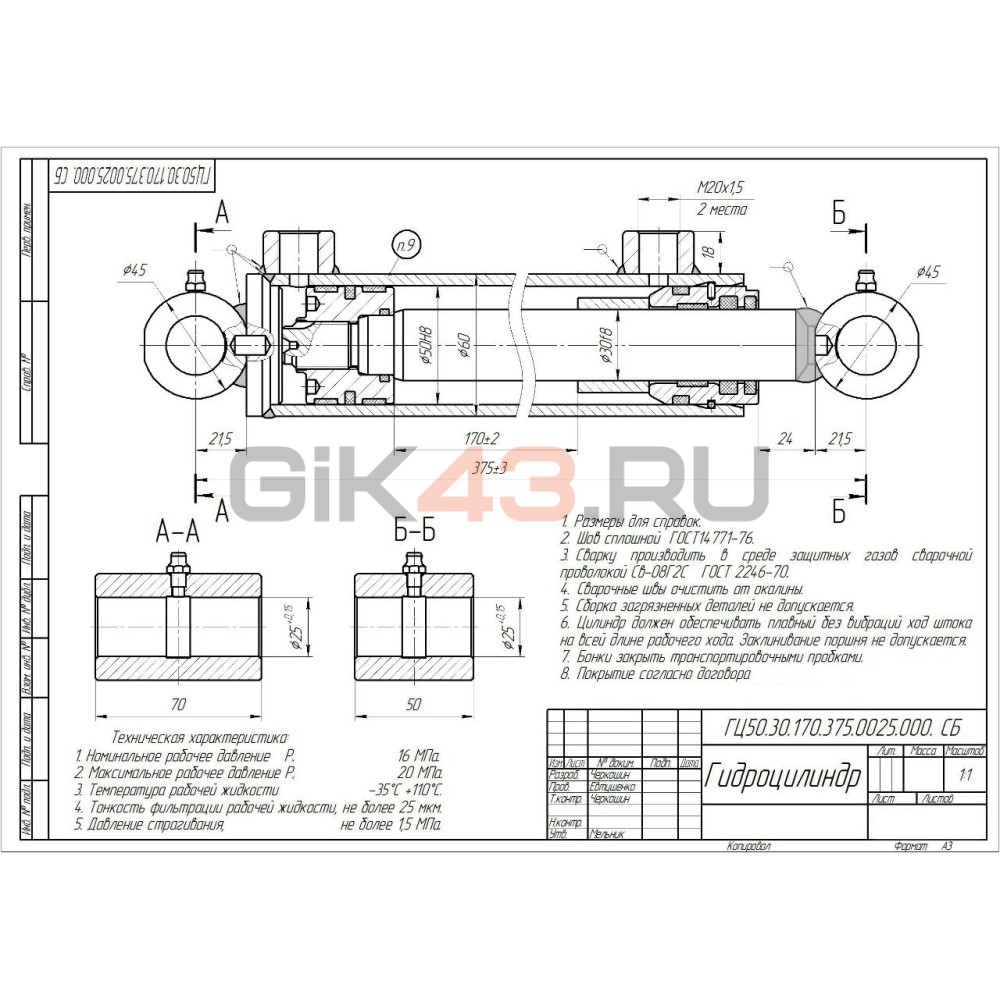 Гидроцилиндр ГЦ 50.30.170.375.0025