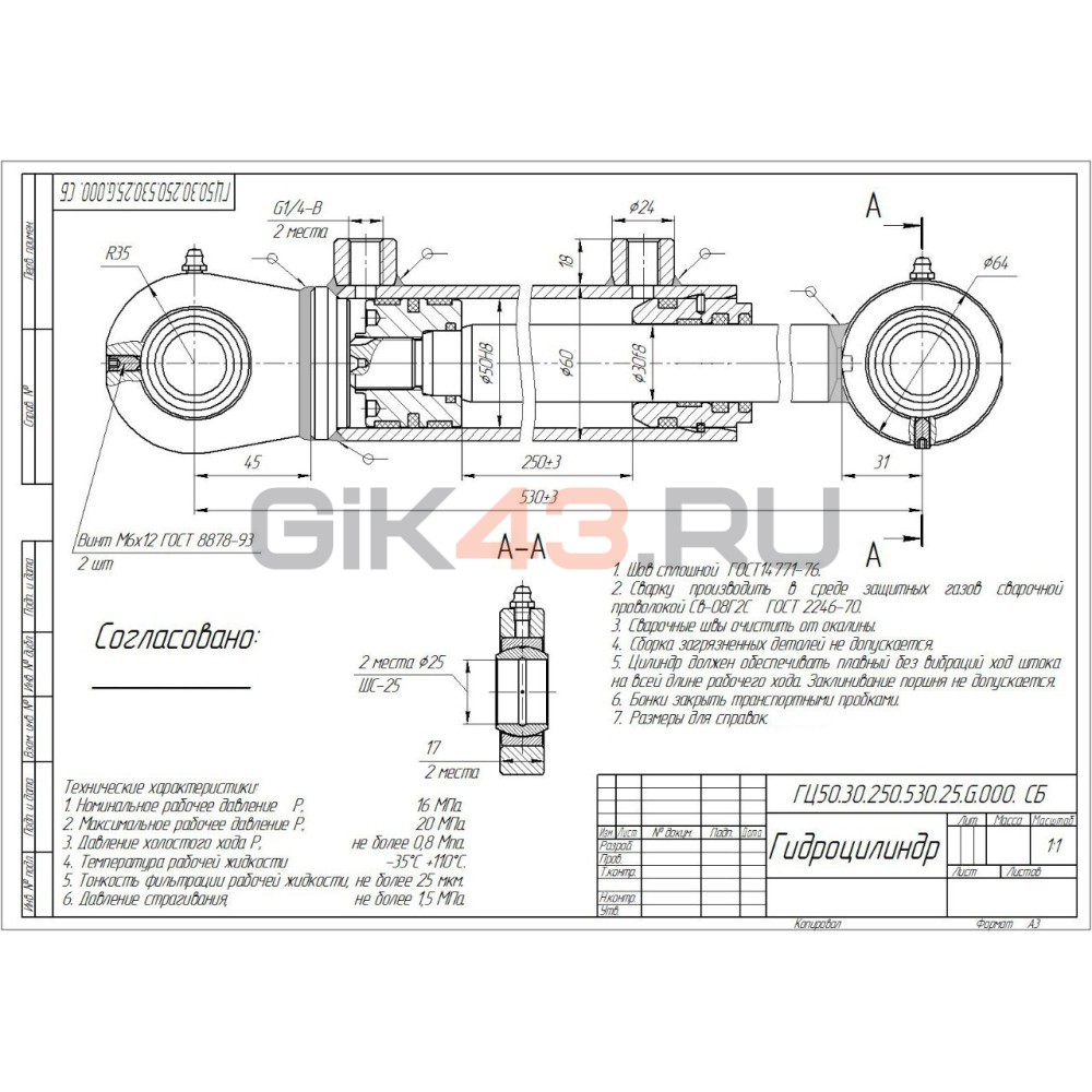 Гидроцилиндр ГЦ 50.30.250.530.25G