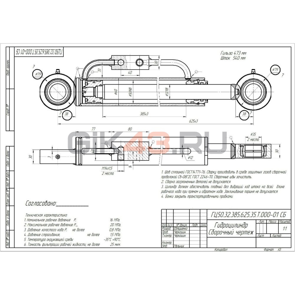 Гидроцилиндр ГЦ 50.32.385.625.35.Т.000-01