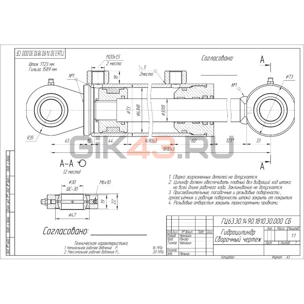 Гидроцилиндр ГЦ 63.30.1490.1810.30