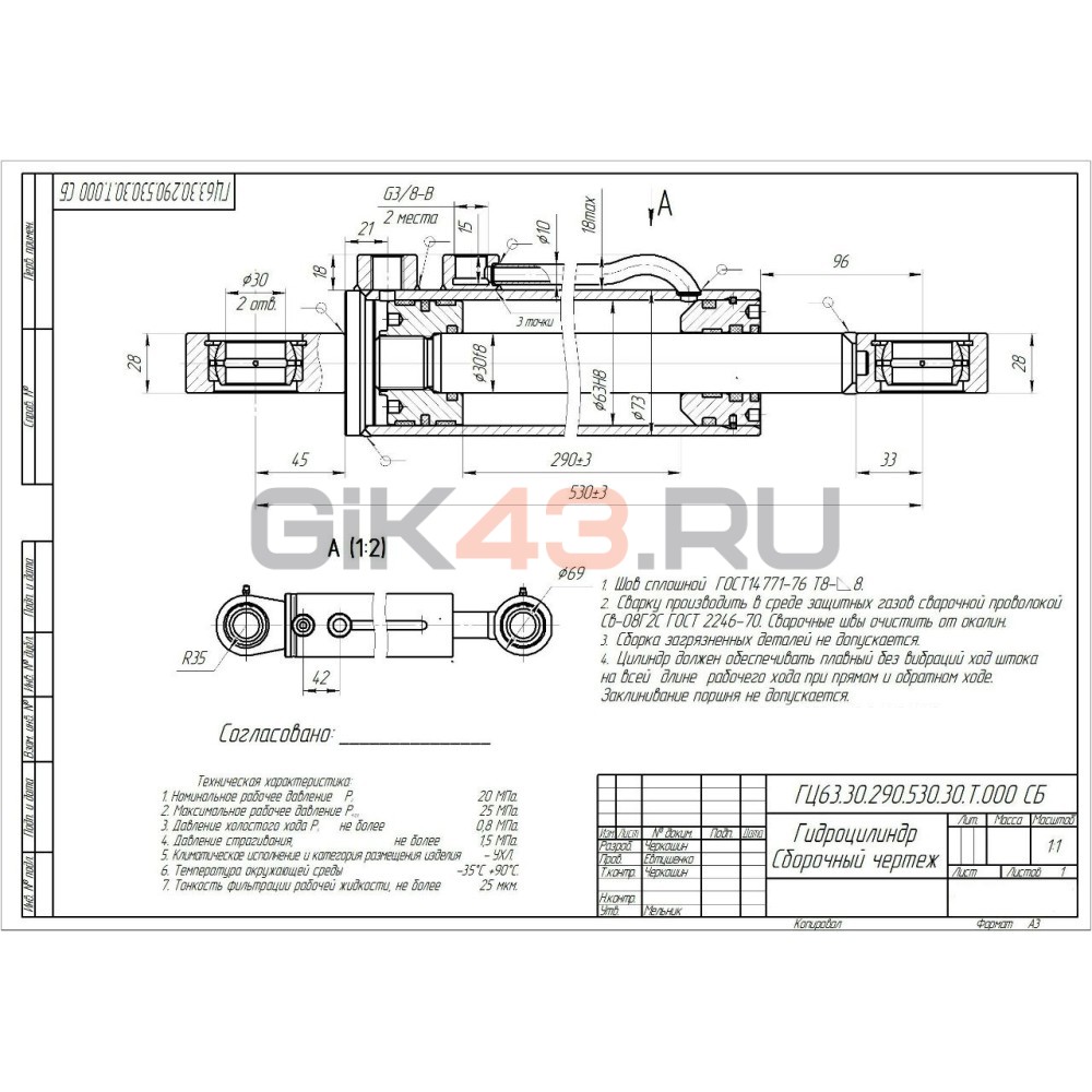 Гидроцилиндр ГЦ 63.30.290.530.30Т