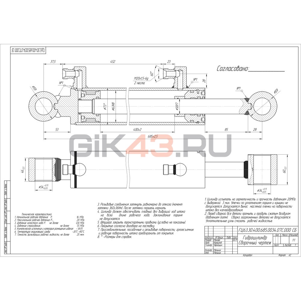 Гидроцилиндр ГЦ 63.30.400.685.0034.07С