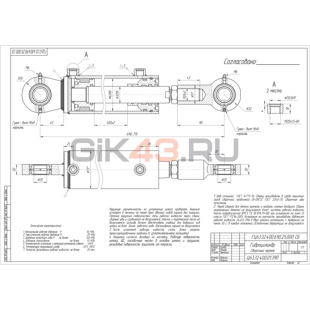 Гидроцилиндр ГЦ 63.32.400.690.25