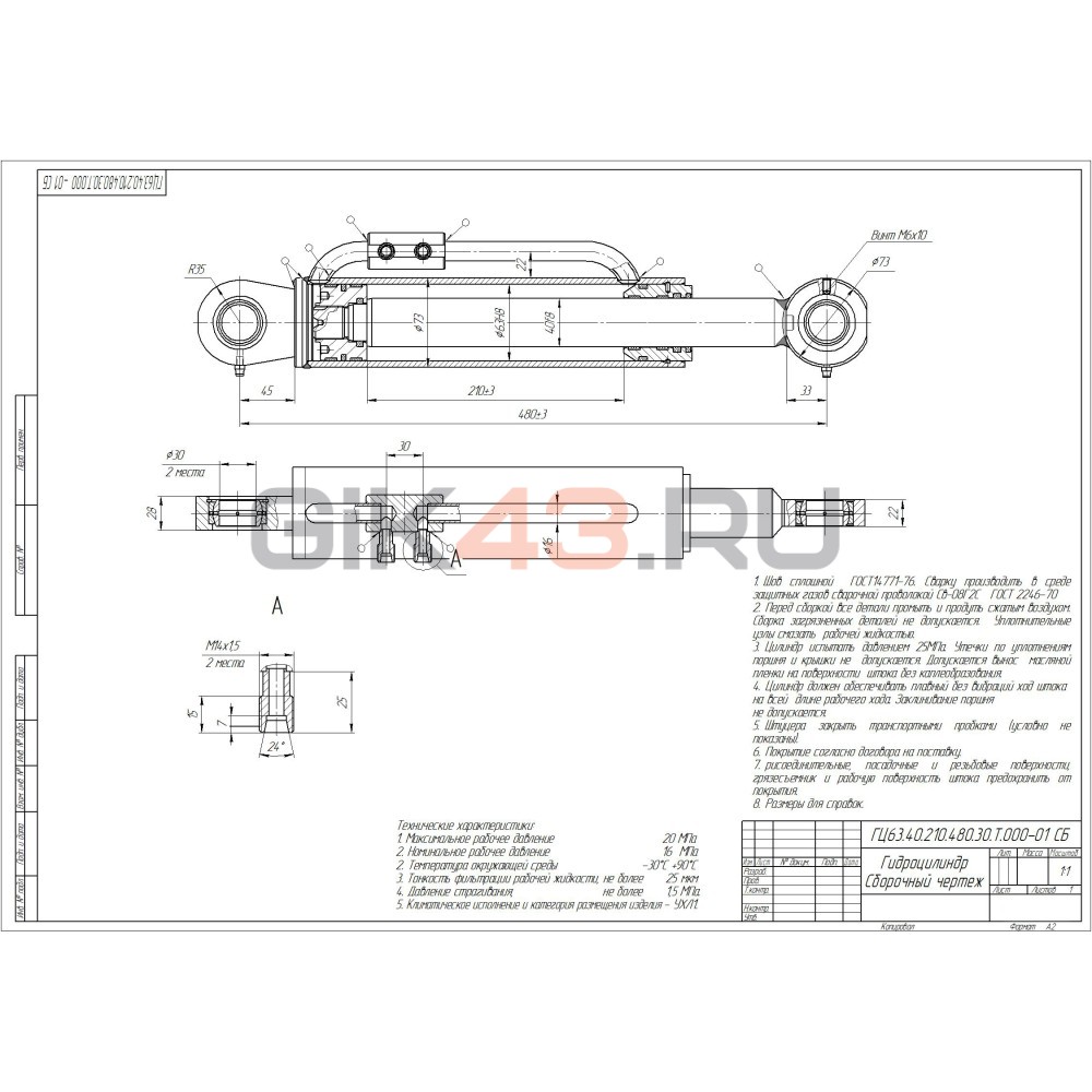 Гидроцилиндр ГЦ 63.40.210.480.30Т-01