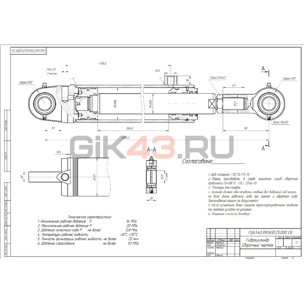 Гидроцилиндр ГЦ 63.40.350.650.25