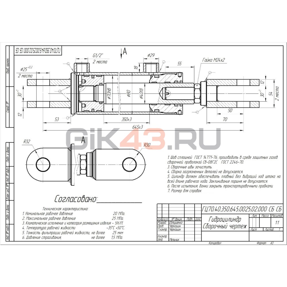 Гидроцилиндр ГЦ 70.40.350.645.0025.02