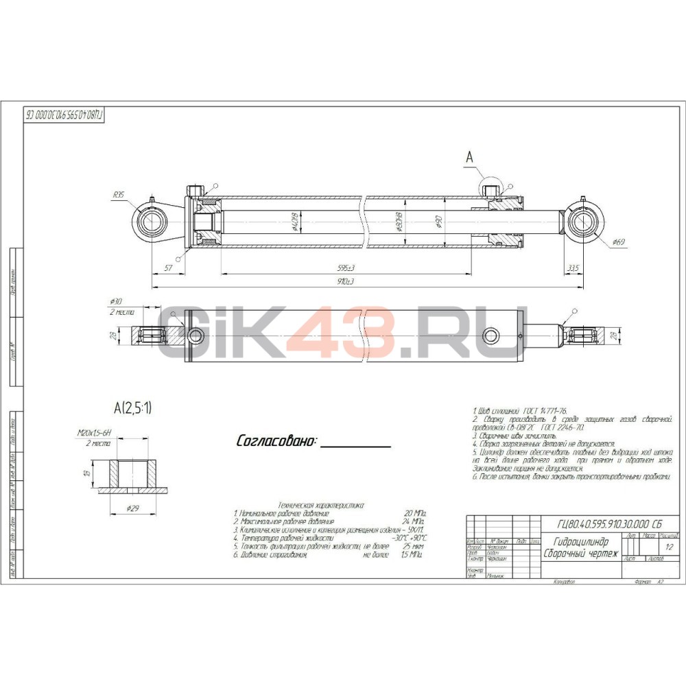 Гидроцилиндр ГЦ 80.40.595.910.30