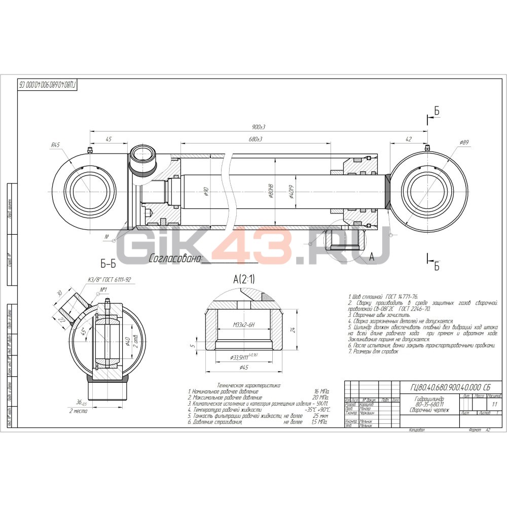 Гидроцилиндр ГЦ 80.40.680.900.40
