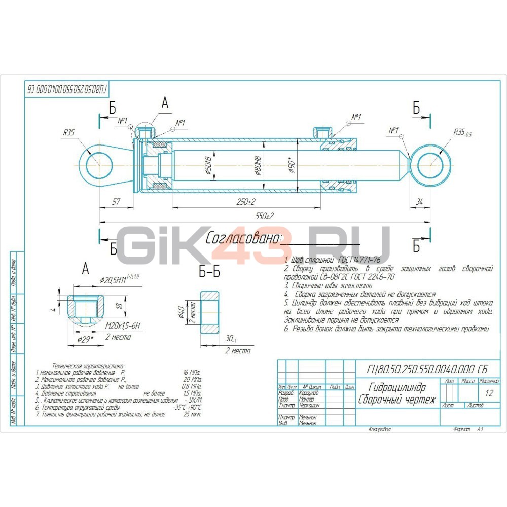 Гидроцилиндр ГЦ 80.50.250.550.0040